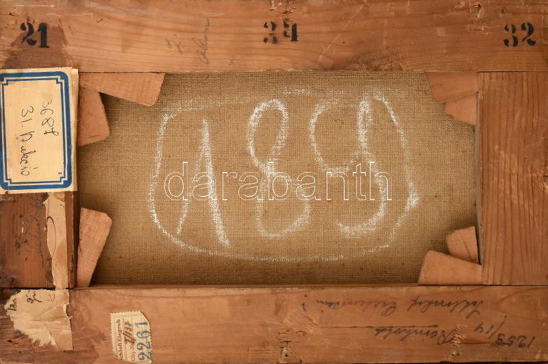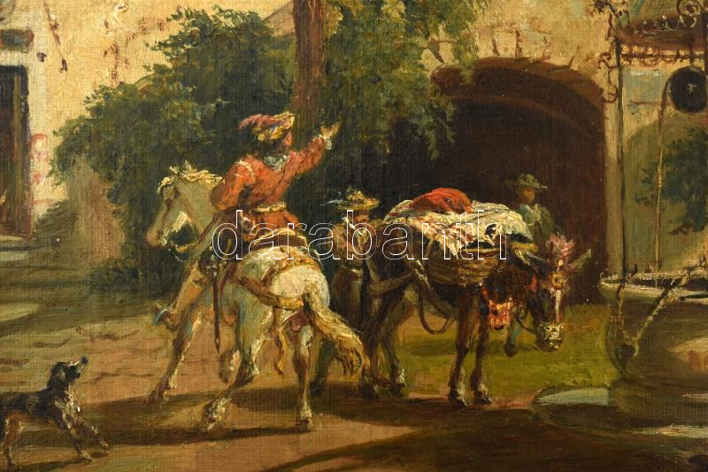 Franz Xaver Reinhold (1816-1893): Seebenstein várának udvara, 1885. Olaj, vászon. Jelezve balra lent: F. Reinhold 1885. Proveniencia: BÁV, 31. képaukció, 1973, 189. tétel. Hátoldalán az aukció címkéjével és Schloss Eisgrub raglappal Fakeretben. 31x21 cm. / Franz Xaver Reinhold (1816-1893), Austrian painter: Seebenstein castle, 1885. Oil on canvas. Signed lower left: F. Reinhold 1885. Auctioned: BÁV, 31st auction, 1973, lot 189. With auction label and Schloss Eisgrub label on the reverse. Framed. 31x21 cm.