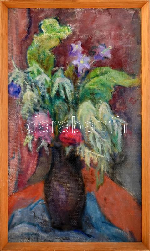 Gráber Margit (1896-1993): Csendélet. Olaj, vászon, farostra kasírozva, jelezve balra lent. 65×38 cm. Fakeretben / oil on canvas, mounted on fibre board, signed lower left, framed