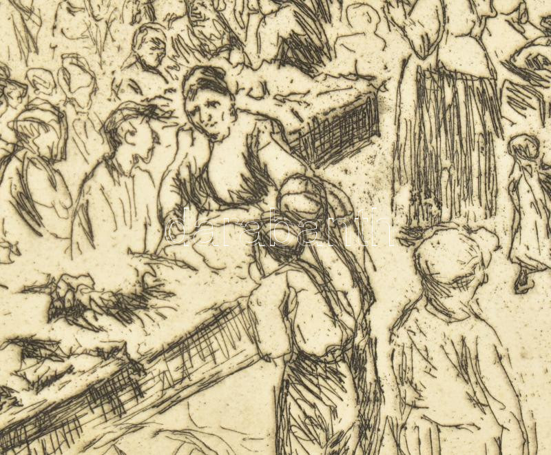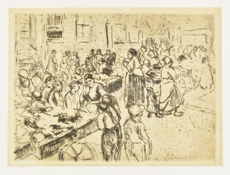 Liebermann, Max (1847-1935): Amsterdami zsidónegyed (Das Judenviertel in Amsterdam). Rézkarc, papír, jelzés nélkül. Paszpartuban. Megjelent: Hermann Struck, Die Kunst des Radierens. Ein Handbuch (Berlin: Bruno Cassirer). 13,5x18,5 cm. / Liebermann, Max (1847-1935): The old jewish quarter in Amsterdam. Etching on paper, unsigned. Published in the book: Hermann Struck: Die Kunst des Radierens. Ein Handbuch (Berlin: Bruno Cassirer).