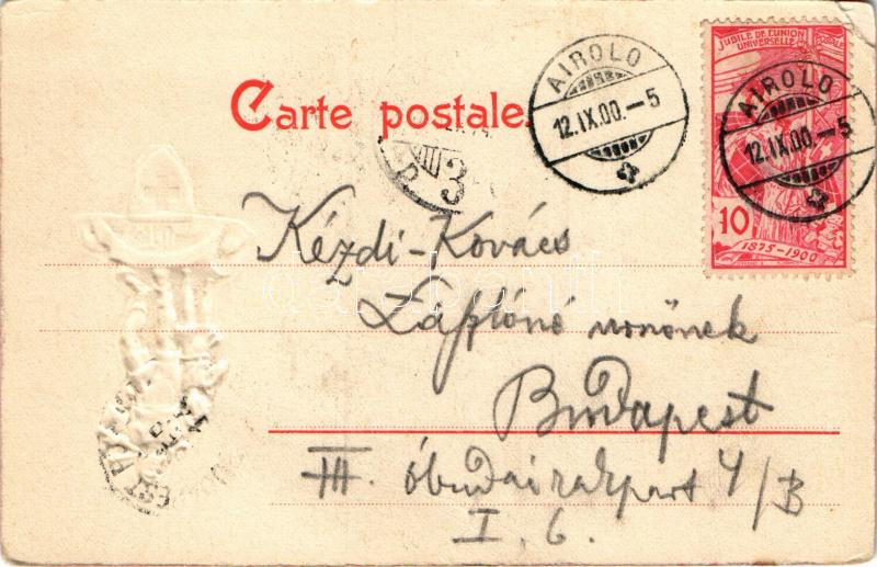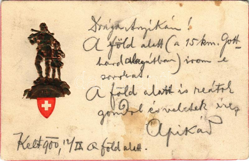 1900 Wilhelm Tell, Swiss coat of arms - Kézdi-Kovács László festőművész levele (EK)