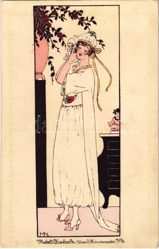 Modell Zwieback. Wien, Kärtnerstrasse 11-15. / Viennese Art Nouveau fashion advertisement postcard s: M.N. (Martin Nikolaus ?) (EK)