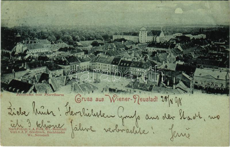 1898 (Vorläufer) Wiener Neustadt, Bécsújhely; Panorama vom Pfarrthurm ...