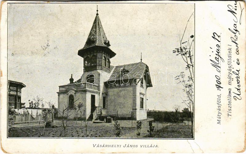 1901 Budapest XVI. Mátyásföld, Vásárhelyi János villája. Tiszteli a má...