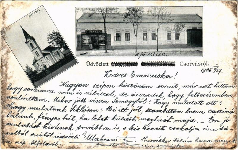 https://www.darabanth.com/en/41-Major-auction/41.1/Postcards/Hungary~16958/1905-Csorvas-Bekes-Reformatus-templom-Fo-utca-kis-szakadas-small-tear~II2991766