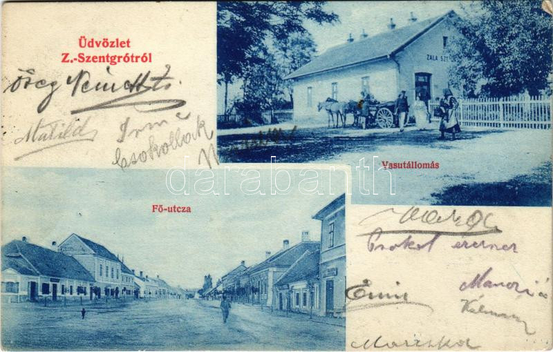 1908 Zalaszentgrót, Fő utca üzletekkel, vasútállomás. Kiadja Németh Em...