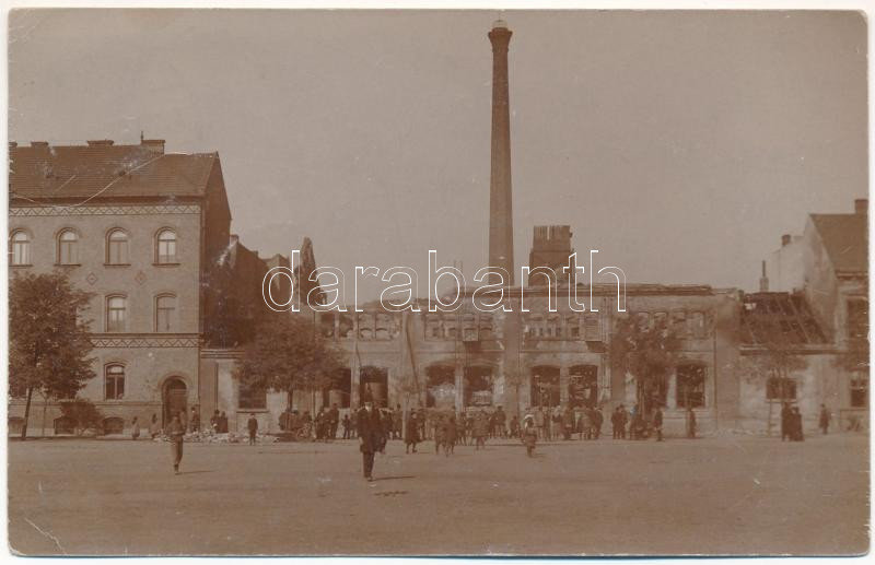1911 Győr, a leégett Meller Ignácz és társa olajgyár a tűz után, az iskola falai is jó kormosak lettek. photo (EK)