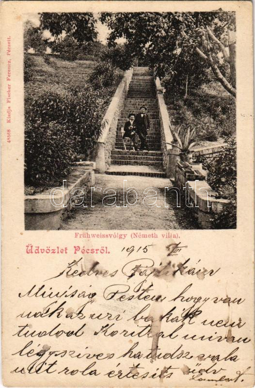 1915 Pécs, Frühweiss völgy, Németh villa. Fischer Ferenc kiadása (EK)