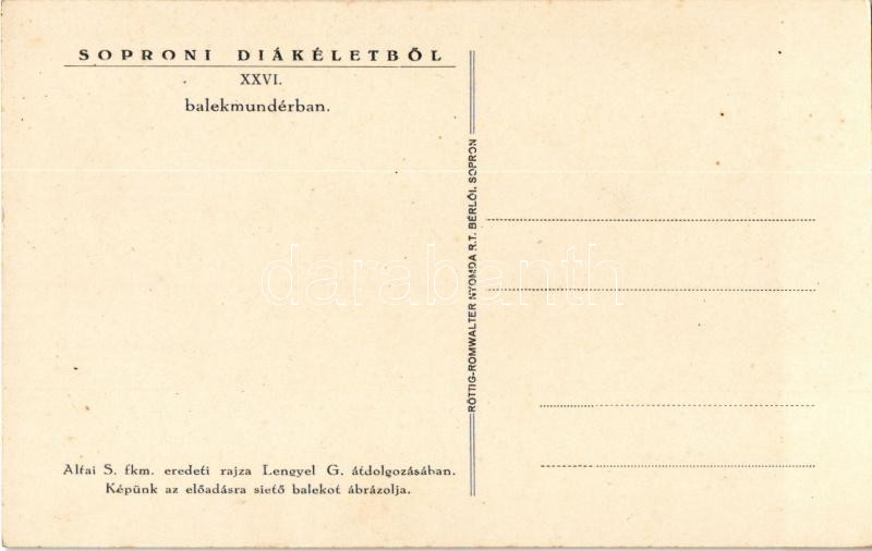 Sopron, A soproni diákéletből XXVI. Balekmundérban. Altai S. fkm. ered... https://www.darabanth.com/en/41-Major-auction/41.1/Postcards/Hungary~16958/Sopron-A-soproni-diakeletbol-XXVI-Balekmunderban-Altai-S-fkm-eredeti-rajza-Lengyel-G-atdo~II3008309