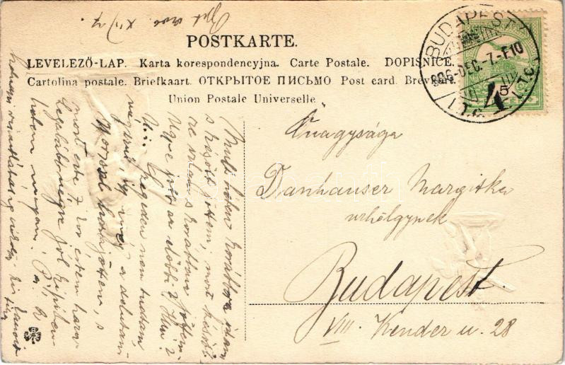 1906 Dombornyomott Krampusz üdvözlet / Embossed Krampus greeting