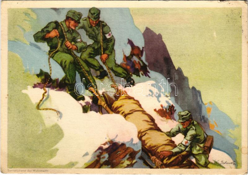 Description: Das Wirken des Deutschen Roten Kreuzes. Verlag Oskar Höfels / Második világháborús német vöröskeresztes katonák mentés közben / WWII German Red Cross military art s: K. Sch. (EK)