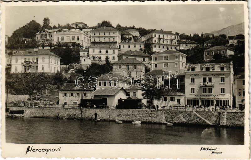 Herceg Novi, Castelnuovo; Hercegnovi railway station, train, Hotell, cafe and restaurant Topola