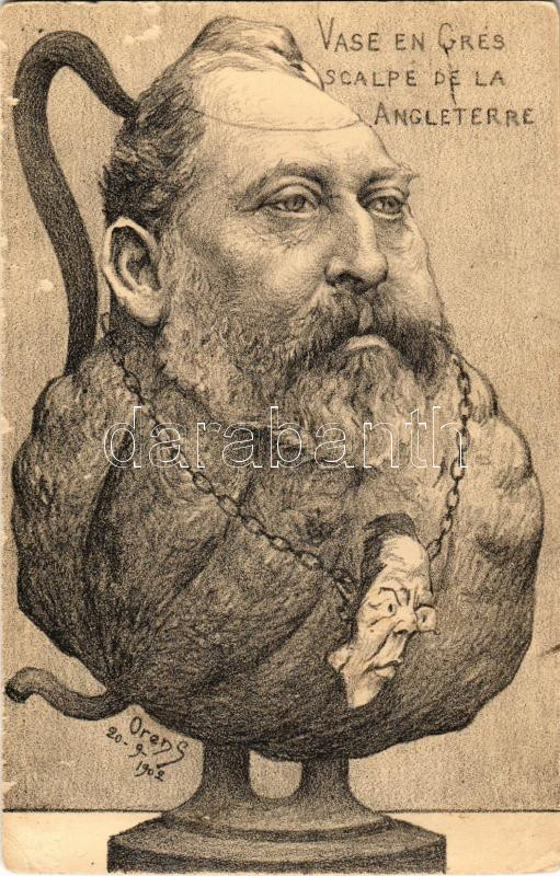 Description: Vase en Grés scalpe de la Angleterre... / Francia politikai karikatúra / French political caricature of Edward VII s: Orens Denizard (felszíni sérülés / surface damage)