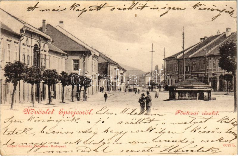 1899 (Vorläufer) Eperjes, Presov; Fő utca / main street (ázott sarkak ...