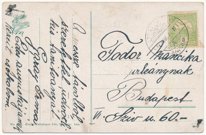 1916 Sztrecsnó, Sztrecsény, Strecno; Vár romladék a Vágnál. Feitzinger Ede No. 1104. / hrad / castle, Váh riverside (kopott sarkak / worn corners)