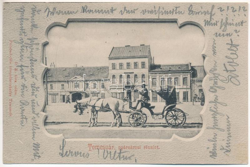 1901 Temesvár, Timisoara; Gyárvárosi részletek, lovas hintó. Polatsek-...
