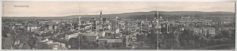 1909 Kolozsvár, Cluj; 3-részes kinyitható panorámalap / 3-tiled folding panoramacard (r)