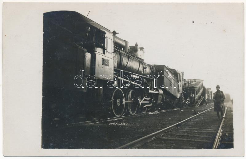 1916 Maroshévíz, Oláhtoplica, Toplita, Toplica; két vonat összeütközött, gőzmozdonyok és katonák / two trains collided, locomotives. photo (fl)