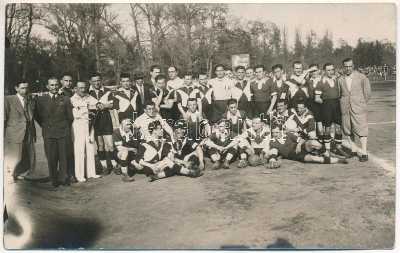 Description: 1932 Kolozsvár, Cluj; Beszkárt (BSzKRt, ma BKV Előre SC) - Universitatea Cluj 2:0 (0:0) labdarúgó mérkőzés, focisták csoportképe a meccs után / Romanian football players after the match. photo
