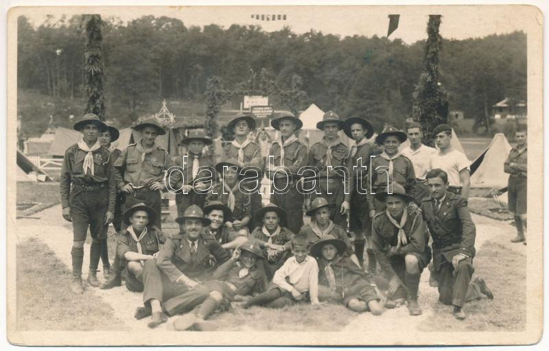 1932 Nagyszeben, Hermannstadt, Sibiu; Nemzeti Cserkésztábor Dumbrava erdőben / National Jamborree in Dumbrava, scouts. photo (EK)