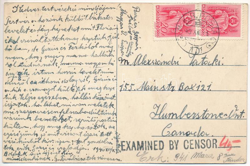 1940 Csanálos, Cenalos, Urziceni; Fő utca, Érni Márton (?) üzlete / main street, shop (EK) + "EXAMINED BY CENSOR"