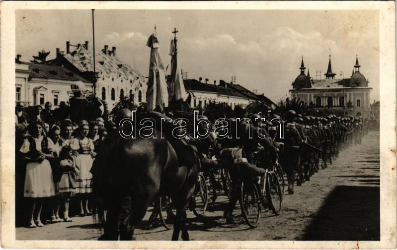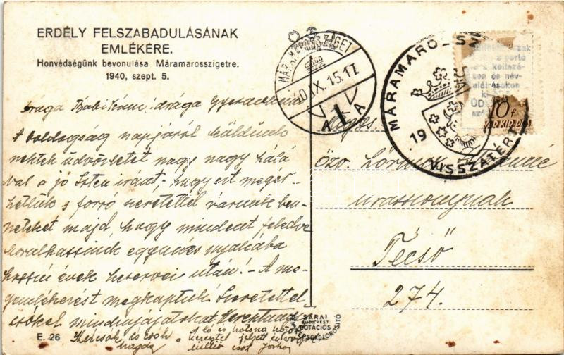1940 Máramarossziget, Sighetu Marmatiei; bevonulás / entry of the Hungarian troops + "1940 Máramarossziget visszatért" So. Stpl. (fl)