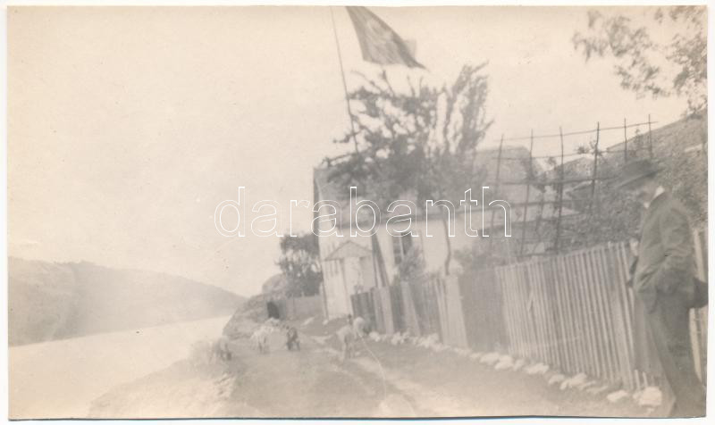 ~1915 Ada-Kaleh, volt török közigazgatás épülete török zászlóval / Turkish administration building with Turkish flag. photo (8 × 13,5 cm)