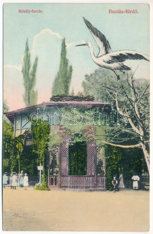 Buziásfürdő, Baile Buzias; Mihály-forrás, gólya. Francz testvérek kiad...