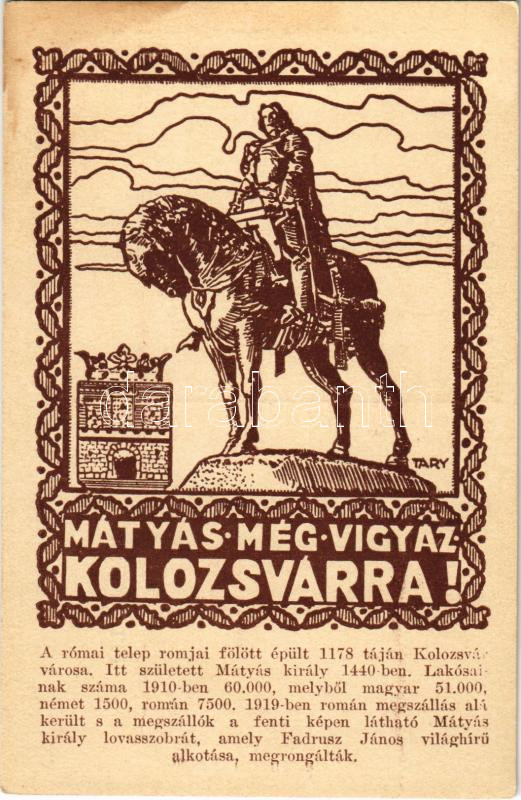 https://www.darabanth.com/en/41-Major-auction/41.1/Postcards/Transylvania~16959/Kolozsvar-Cluj-Matyas-meg-vigyaz-Kolozsvarra-Magyar-irredenta-kepeslap-szoborral-Kozmuv~II2991196