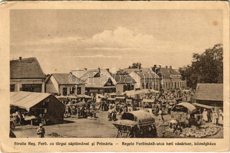 Marosújvár, Ocna Mures; Strada Reg. Ferd. cu targul saptamanal si Prim... https://www.darabanth.com/en/41-Major-auction/41.1/Postcards/Transylvania~16959/Marosujvar-Ocna-Mures-Strada-Reg-Ferd-cu-targul-saptamanal-si-Primaria-Ferdinand-kiraly-utc~II3008737