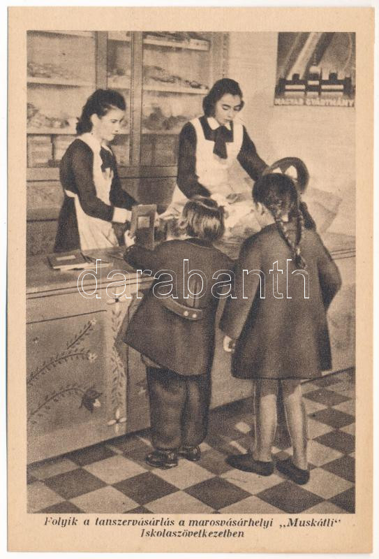 Marosvásárhely, Targu Mures; Folyik a tanszervásárlás a Muskátli Iskol... https://www.darabanth.com/en/41-Major-auction/41.1/Postcards/Transylvania~16959/Marosvasarhely-Targu-Mures-Folyik-a-tanszervasarlas-a-Muskatli-Iskolaszovetkezetben-Erdel~II3008159