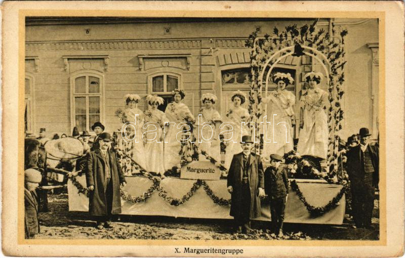Nagyszeben, Hermannstadt, Sibiu; Első Virág Karnevál, X. Margueritengruppe lovas szekere / Blumentag Festwagen / flower carnival carriage (non PC) (EK)