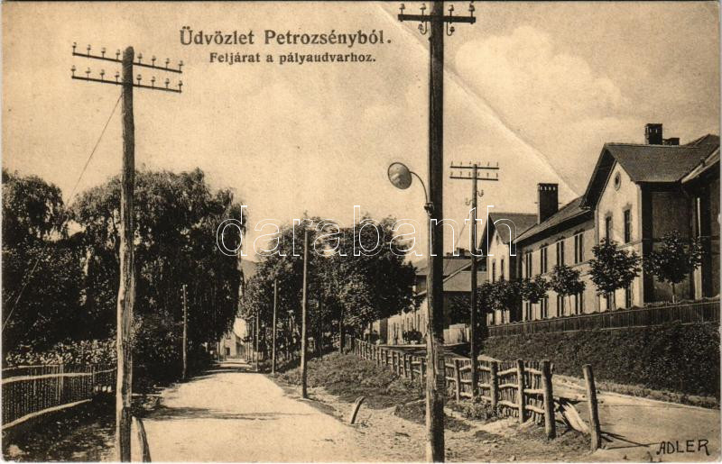 Petrozsény, Petrosani; Feljárat a pályaudvarhoz. Adler fényirda 1909. / railway station (fa)