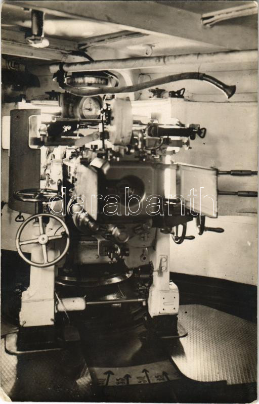 Osztrák-Magyar Haditengerészet Tegetthoff-osztályú csatahajó 15 cm-es kazamata fegyver belseje, a beszélő cső a fegyver fölött van és a tüzelő mester adott rajta keresztül parancsokat a martózoknak / K.u.K. Kriegsmarine Kasemattgeschütz / WWI Austro-Hungarian Navy Radetzky-class pre-dreadnought battleship's casemate gun interior, the speaking tube snaking above the gun was used by the fire director to give instructions to the gun crew. photo (Rb)