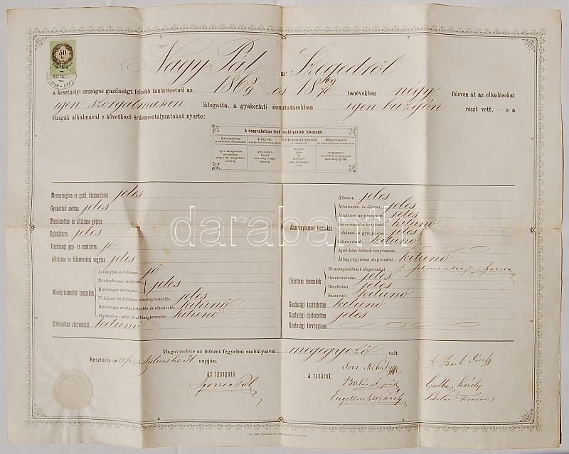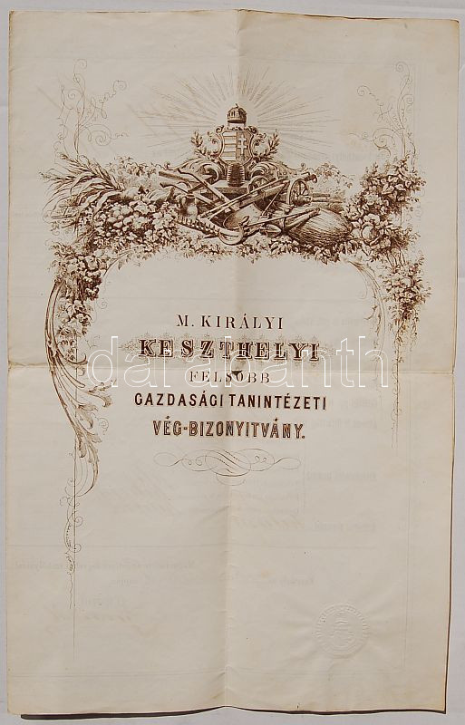 1869/70 Keszthelyi felsőbb gazdasági tanintézeti dekoratív vég-bizonyítvány