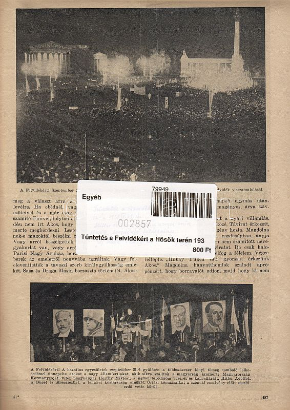 Tűntetés a Felvidékért a Hősök terén 1938.IX.21-én, Hitler és Chamberlain angol miniszterelnök sorsdöntő találkozása, "Uj Idők" 1938.X.2