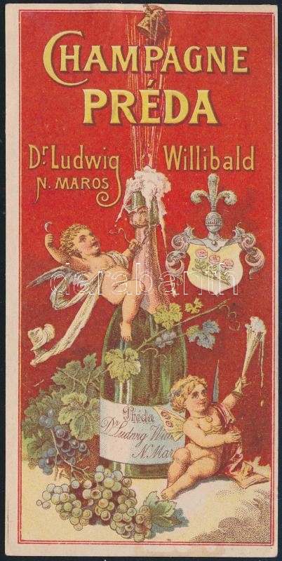 1905 Ludwig Willibald nagymarosi pezsgőgyár Préda pezsgő dekoratív szá...