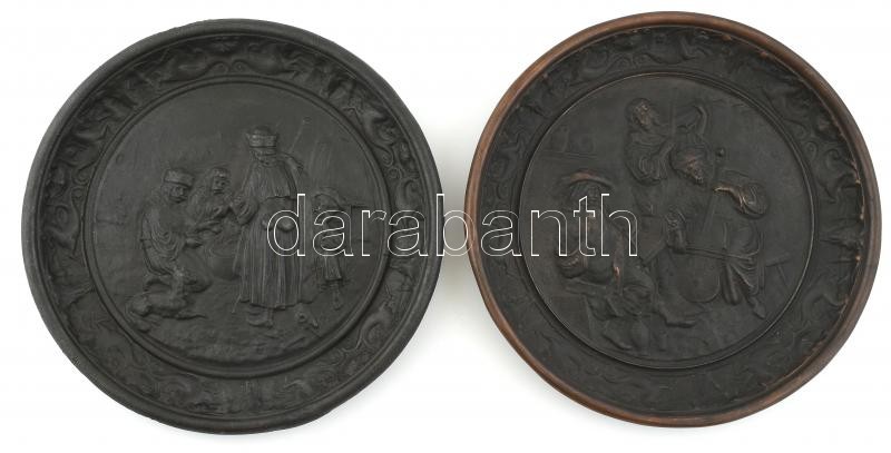 Fali dísztányér pár - Zenélő parasztok és bográcsozó parasztok. Öntöttvas, Dernő (szlovákul: Drnava község Szlovákiában, a Kassai kerület Rozsnyói járásában. ), 1860 körül. Korának megfelelő sérülésekkel. Az 1855-ös párizsi világkiállításon a vasgyár ezüstérmet kapott. A 19. század egyik legjelentősebb vasöntödéje. "A bányászat, a vasgyártás, a vaskő- és szénfuvarozás, a szénégetés megélhetést biztosított a környék lakosságának. A gömöri vasútvonal felépítése után a vasgyár messze került a közlekedési útvonalaktól, és fokozatosan elveszítette versenyképességét. A 19. század 80-as éveitől hanyatlásnak indult. A vasgyártás akadozott A gyárat 1913-15-ben felszámolták. 1918-ban az Andrássy-leszármazott Széchenyi Aladár eladta az üzemet berendezésével együtt az azt korában is bérlő Rimamurány-Salgótarjáni Vasmű Részvénytársaságnak. A bánya 1915-ig az utóbbi kezén maradt, majd a Vasércbányák (Zelezorudné bane) nevű állami vállalat tulajdonába került s véglegesen 1965-66-ban állt le." Forrás: Móser Zoltán: Gömör ködben, fényben. 2009. Pair of wall plates - Peasants playing music and peasants cooking. Cast iron, Dernő, cca. 1860