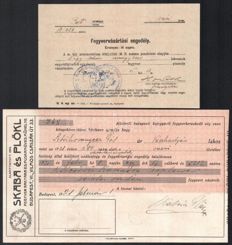 https://www.darabanth.com/en/410-Online-auction/410.0/Art-and-other-collectibles/Printed-Materials~1000003/cca-1920-Vadaszattal-kapcsolatos-nyomtatvanyok-fegyverado-hirdetmeny-fegyvervasarlasi-enged~II2544852