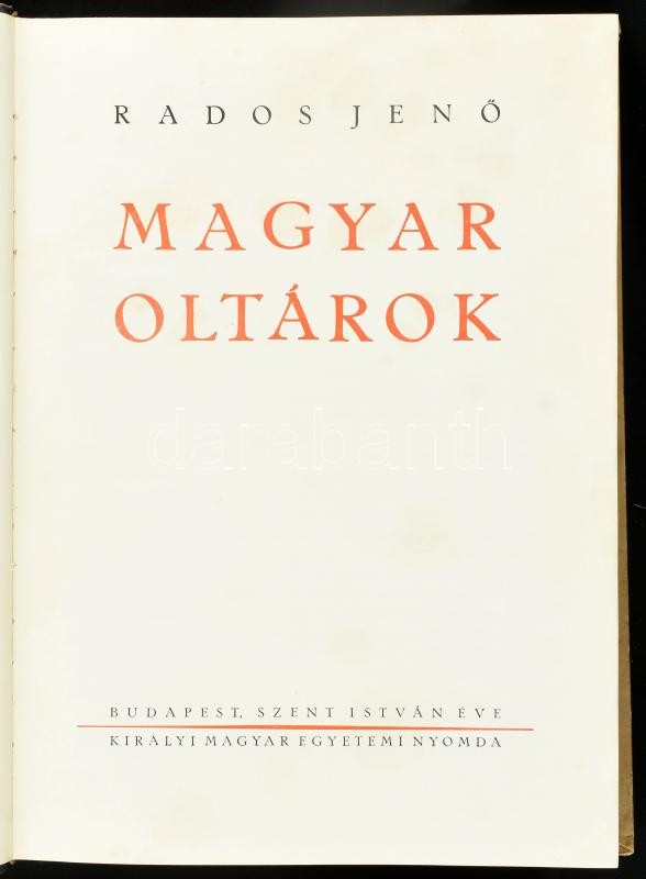 Rados Jenő: Magyar oltárok. Bp., 1938, Kir. M. Egyetemi Nyomda, 93+2 p... https://www.darabanth.com/en/410-Online-auction/410.0/Books/Books-Architecture-Art~1000012/Rados-Jeno-Magyar-oltarok-Bp-1938-Kir-M-Egyetemi-Nyomda-93plus2-pplusCLXXI-tplus2-p-Szovegkozt~II2523236