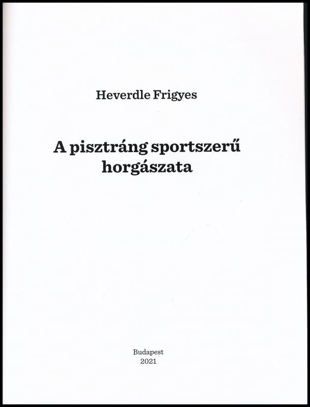 Heverdle Frigyes: A pisztráng sportszerű horgászata. Bp., 2021, Magyar Halászati Kultúráért Alapítvány. 56p. Megjelent 500 példányban. Kiadói papírkötésben.