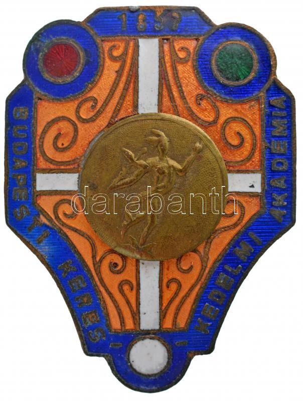 1857. "Budapesti Kereskedelmi Akadémia" tűzzománcozott Br jelvény (32x43mm) T:2,2- zománchiba
