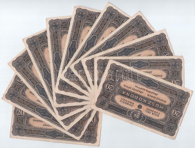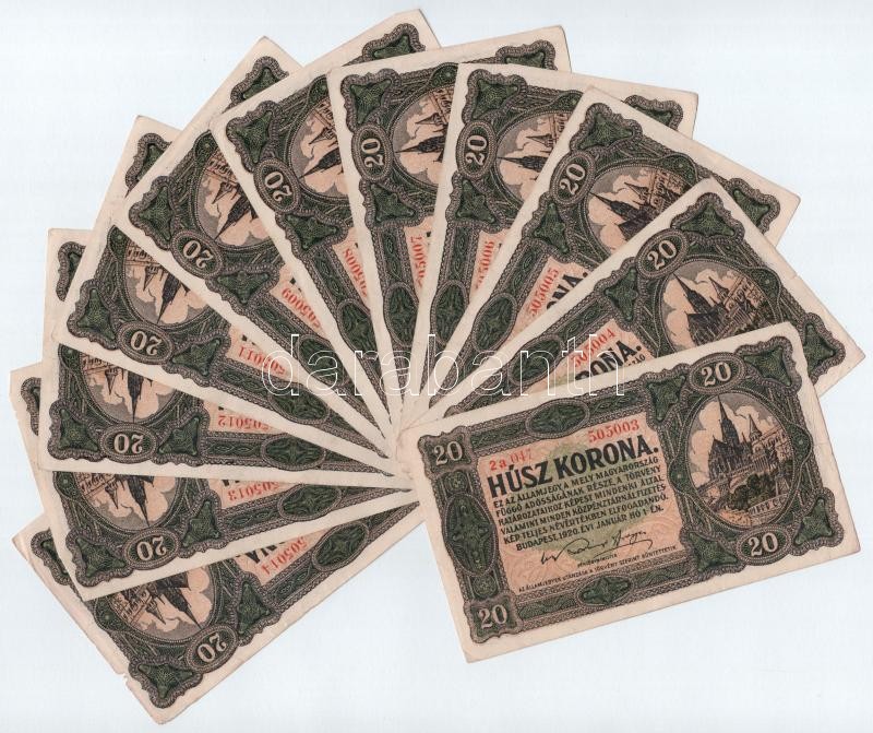 1920. 20K (11x, sorszámkövetők, egy kihagyással: "2a 047 505003 - 2a 047 505014") T:II,II- több hajtatlan, néhányon kisebb beszakadások, négyen kisebb anyaghiány