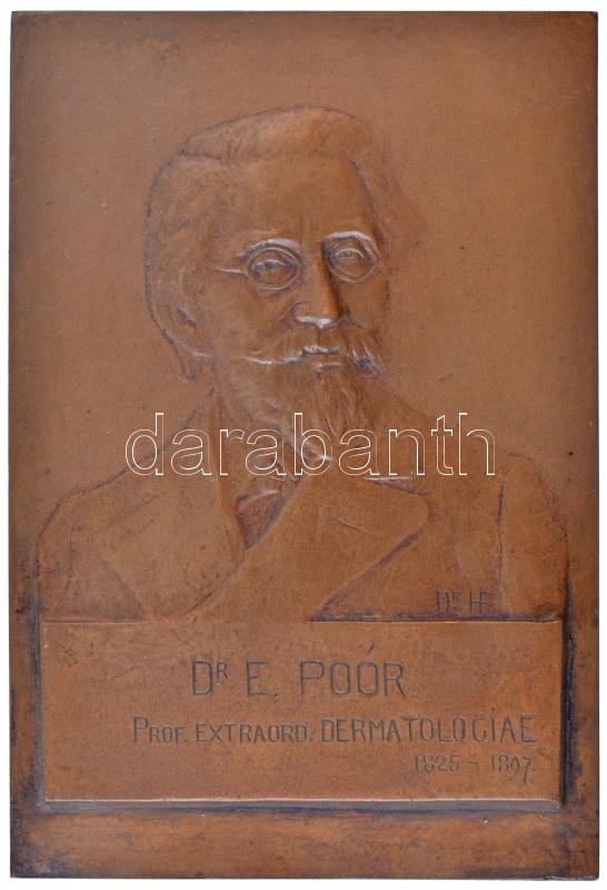 Dr. Hőgyes Ferenc (1860-1923) 1897. "DR. E. POÓR PROF. EXTRAORD. DERMATOLOGIAE 1825-1897" Dr. Poór Imre bőrgyógyászt ábrázoló egyoldalas, öntött bronz plakett (157x107mm) T:1-,2