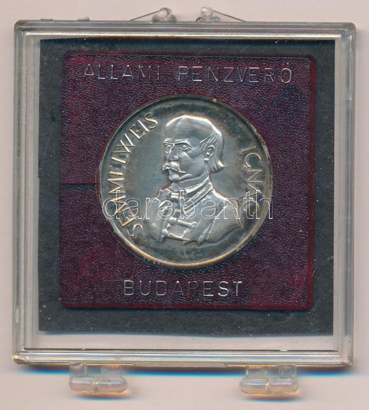 Kiss Nagy András (1930-1997) 1997. "Orvos sor / Semmelweis Ignác" jelzetlen, ezüstözött emlékérem sérült ÁPV tokban (32mm) T:1 (eredetileg PP) patina