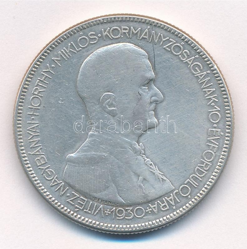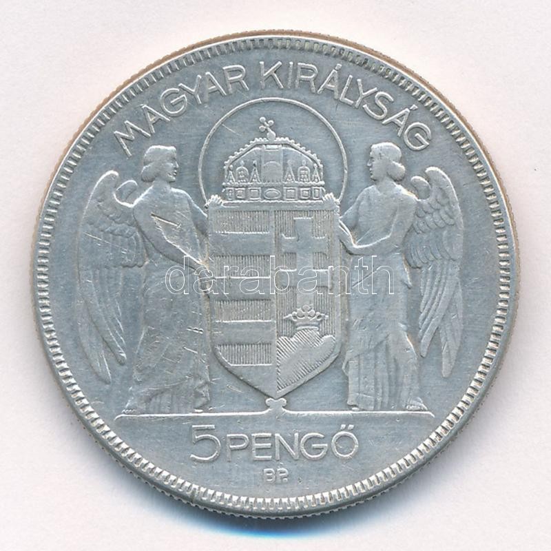 https://www.darabanth.com/en/410-Online-auction/410.0/Numismatics/Hungarian-coins-and-coins-with-Hungarian-mint-marks~2000008/1930-5P-Ag-Horthy-jobbra-T2-3-Adamo-P8~II2545420