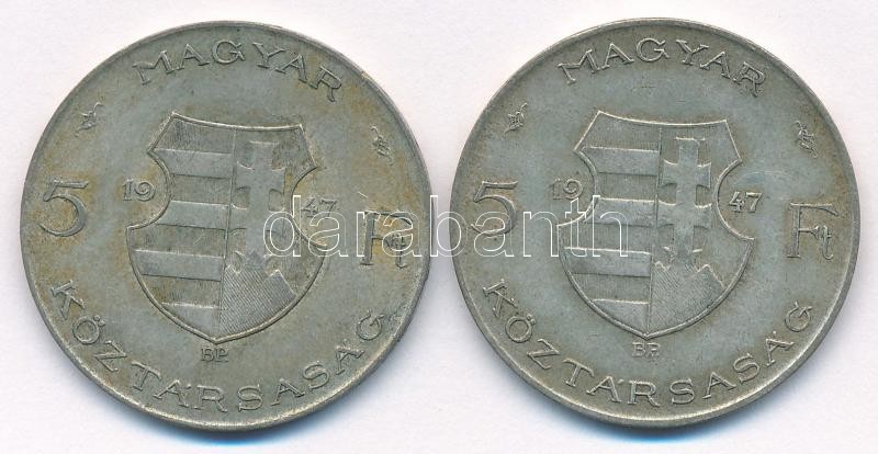 https://www.darabanth.com/en/410-Online-auction/410.0/Numismatics/Hungarian-coins-and-coins-with-Hungarian-mint-marks~2000008/1947-5Ft-Ag-Kossuth-2x-T2-patina-Adamo-F81~II2544692