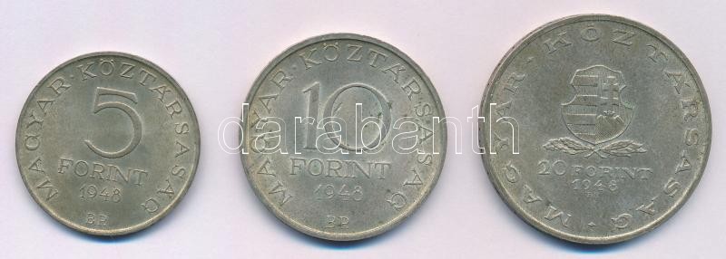 1948. 5Ft Ag "Petőfi" + 10Ft Ag "Széchenyi" + 20Ft Ag "Táncsics" "Szabadságharc sor" T:1-,2 patina