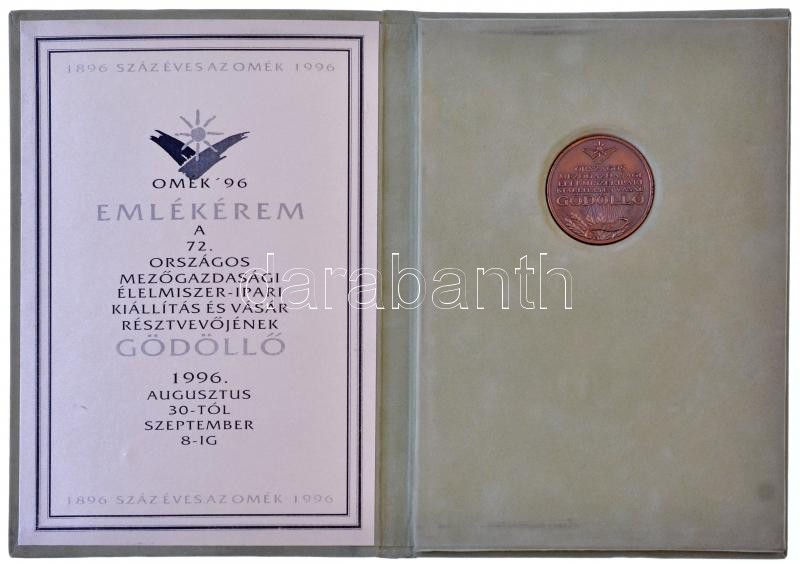 Description: 1996. "/ Országos Mezőgazdasági Élelmiszeripari Kiállítás és Vásár - Gödöllő" bronz emlékérem, OMÉK emléklapos, bársony borítású mappában (42,5mm) T:1-