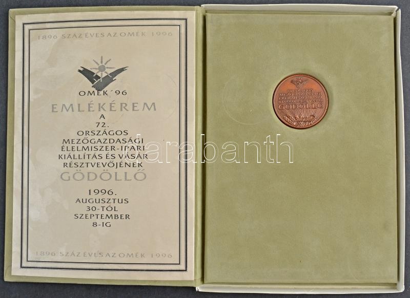 1996. "/ Országos Mezőgazdasági Élelmiszeripari Kiállítás és Vásá... https://www.darabanth.com/en/410-Online-auction/410.0/Numismatics/Hungarian-commemorative-medals-and-plaques~2000010/1996-Orszagos-Mezogazdasagi-Elelmiszeripari-Kiallitas-es-Vasar-Godollo-bronz-eml~II2547591