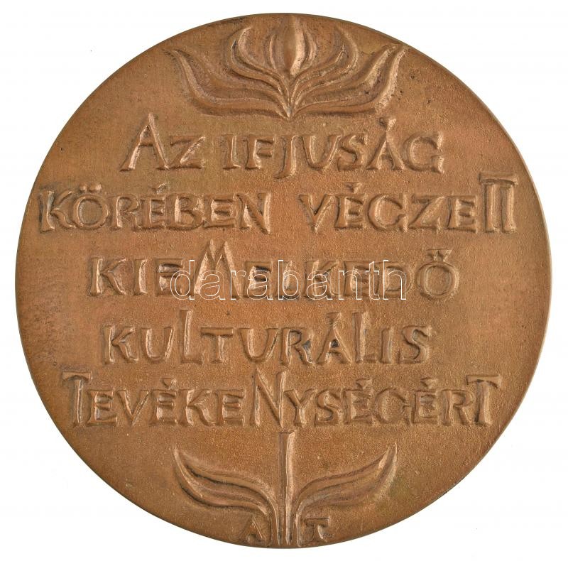 Description: Asszonyi Tamás (1942-) ~1970-1980. "KISZ Budapesti Bizottsága / Az ifjúság körében végzett kiemelkedő kulturális tevékenységért" Br emlékérem eredeti tokban (80mm) T:1